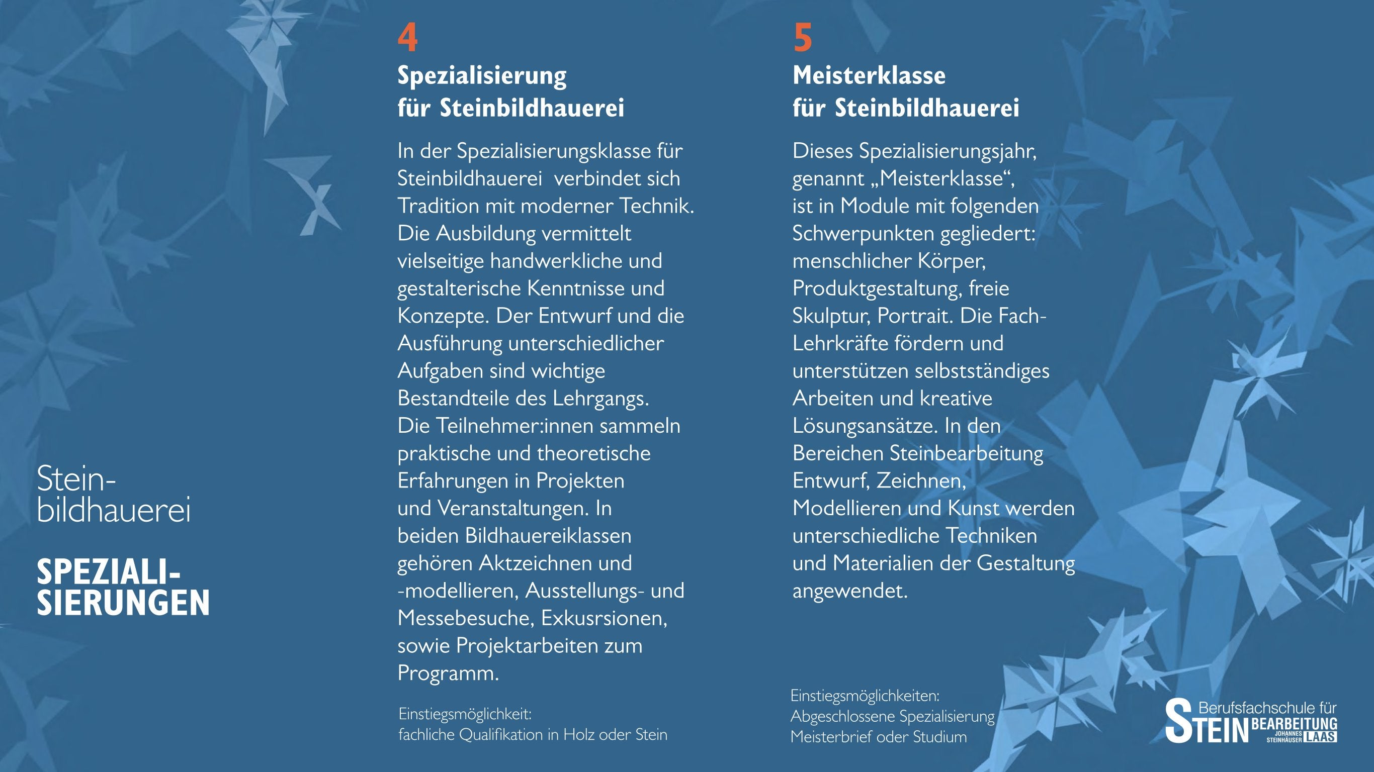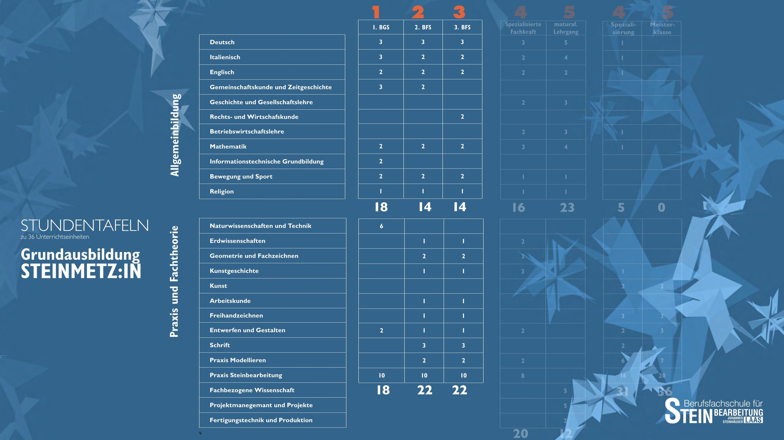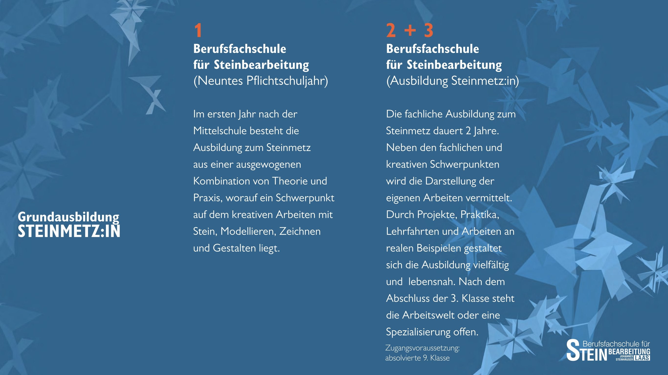 Unsere Klassen und Ausbildungsmöglichkeiten an der Berufsfachschule für Steinbearbeitung „Johannes Steinhäuser“ zurück