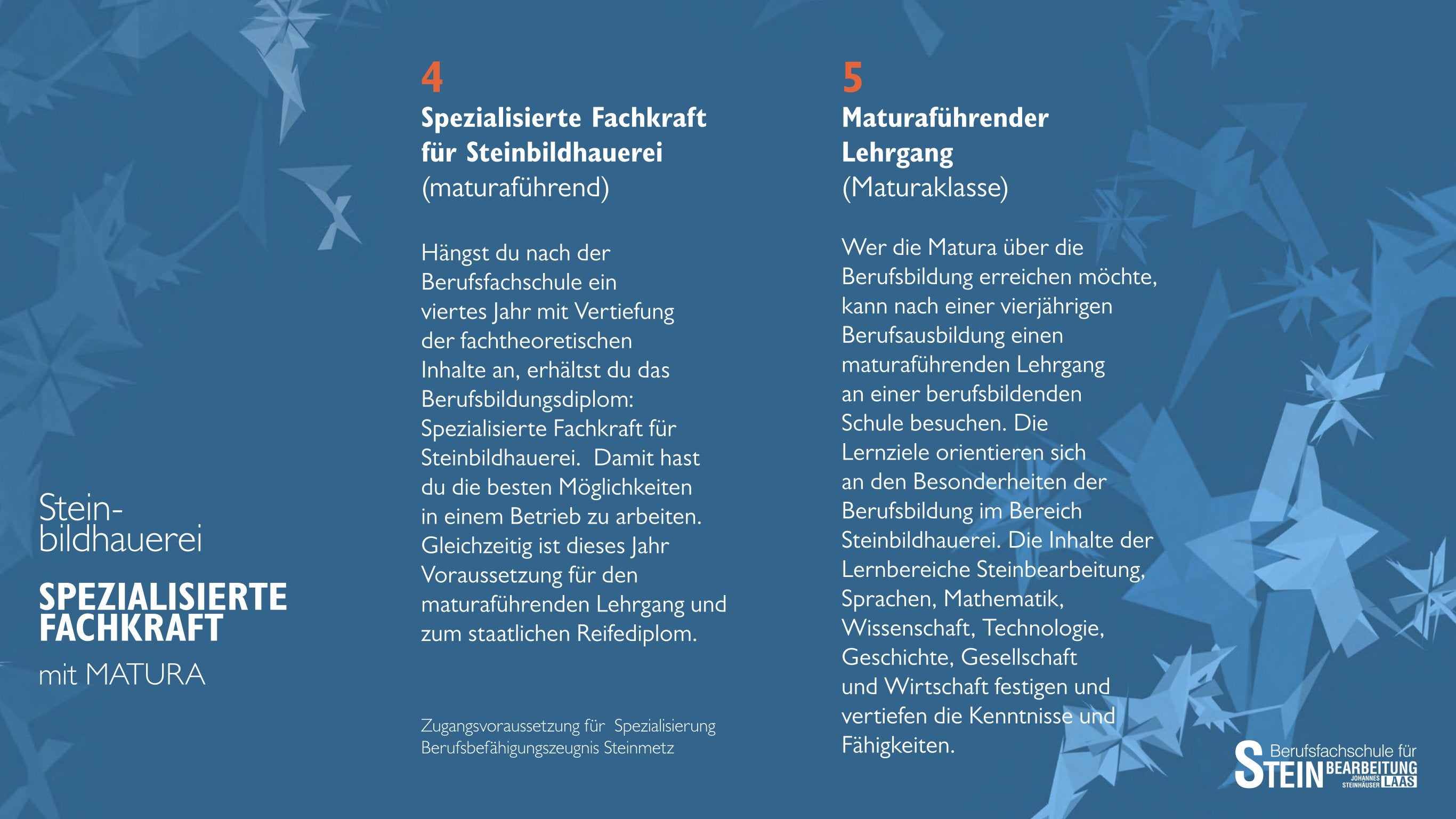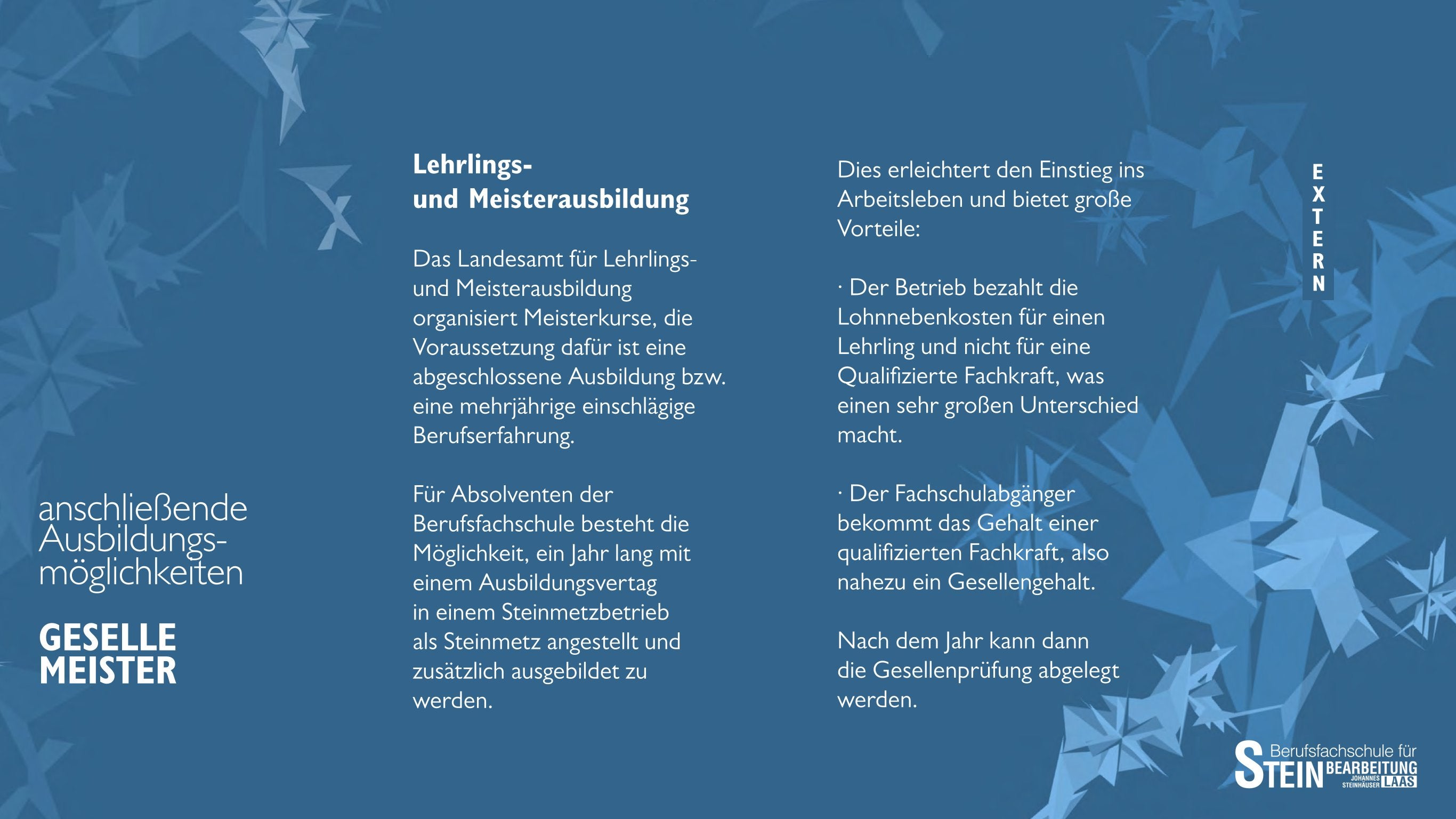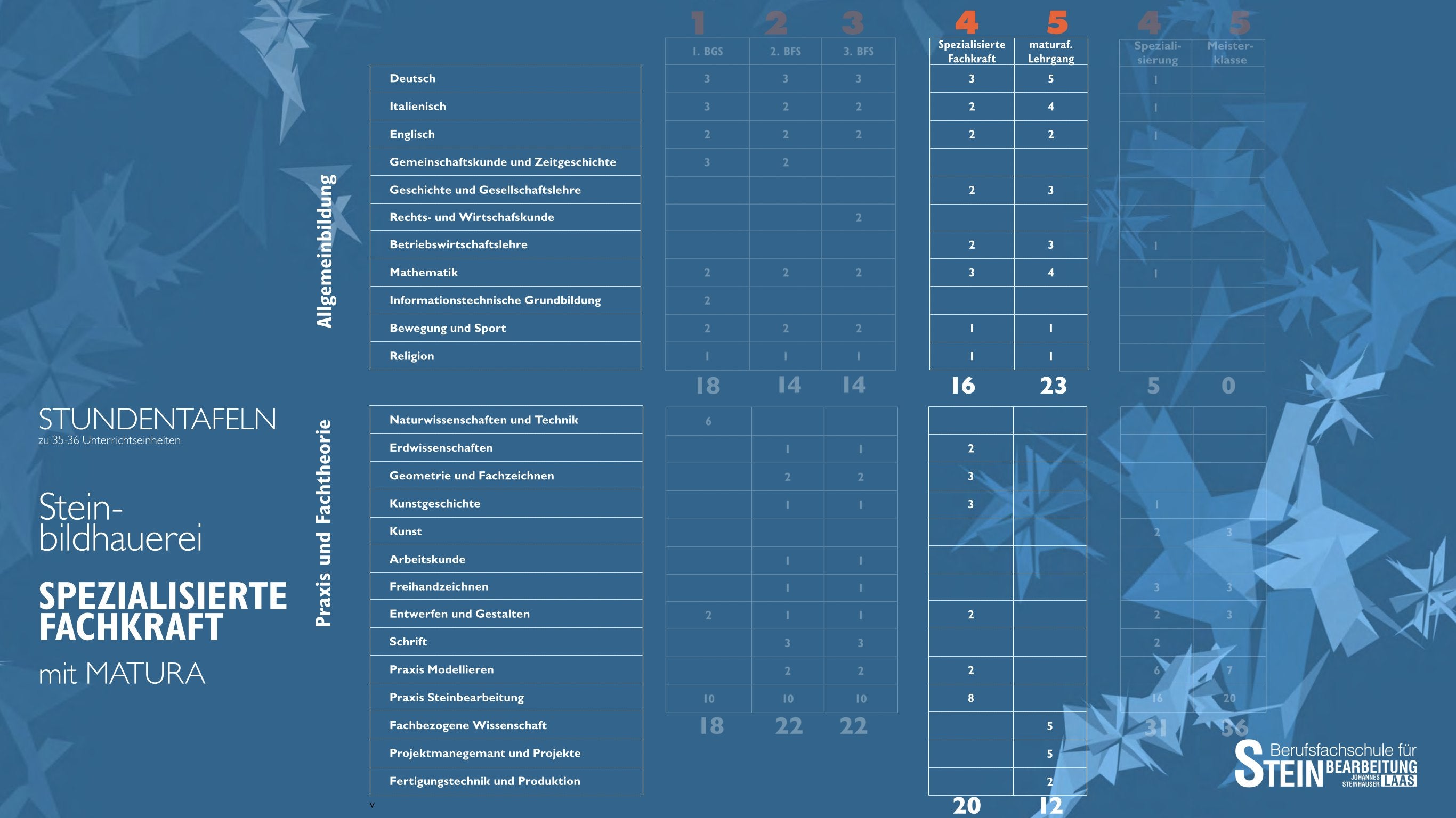 Unsere Klassen und Ausbildungsmöglichkeiten an der Berufsfachschule für Steinbearbeitung „Johannes Steinhäuser“ zurück