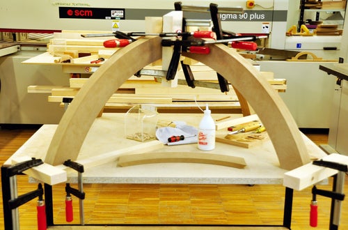 In Kooperation mit der internen Holzwerkstatt wurden die Diagonal- und Bogenrippen des Modells an der CNC-Fräse hergestellt und eines der Tonnengewölbe beispielhaft verschalt. Die Schüler schufen mit ihrer Arbeit ein hervorragendes Anschauungsobjekt für den Fachunterricht der BFS.