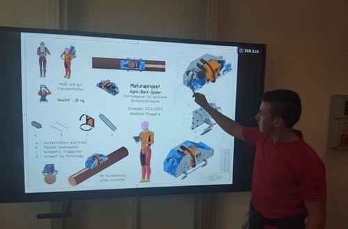 So hat Andreas Pinggera ein Entrindegerät für Bäume mit Borkenkäferbefall entworfen. „Ich wählte dieses Projekt, weil ich mich gerne im Wald aufhalte und mit der Motorsäge arbeite. Ein Entrindegerät kann der Forstverwaltung helfen, im Kampf gegen den Käfer bessere Resultate zu erzielen. Ziel ist es, mithilfe des Gerätes die Baumrinde so schnell und sauber wie möglich zu entfernen bzw. zu zerstören, damit die Larven vernichtet werden und dem Käfer der Brutraum genommen wird“, so der Schüler.