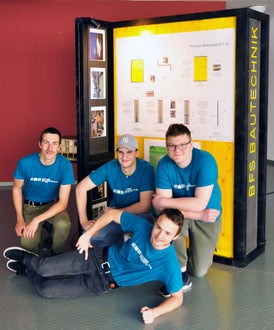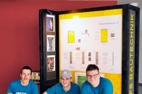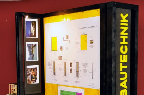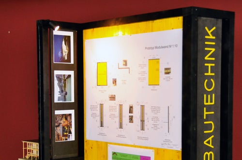 Im Projektatelier der 4. Klasse BFS Bautechnik und in Zusammenarbeit mit der hauseigenen Holzwerkstatt entwickelten die SchülerInnen den Prototyp einer mobilen Modulwand, der sowohl für Ausstellungen als auch für schulinterne Präsentationen verwendbar ist. Der Prototyp entstand unter folgenden Prämissen: